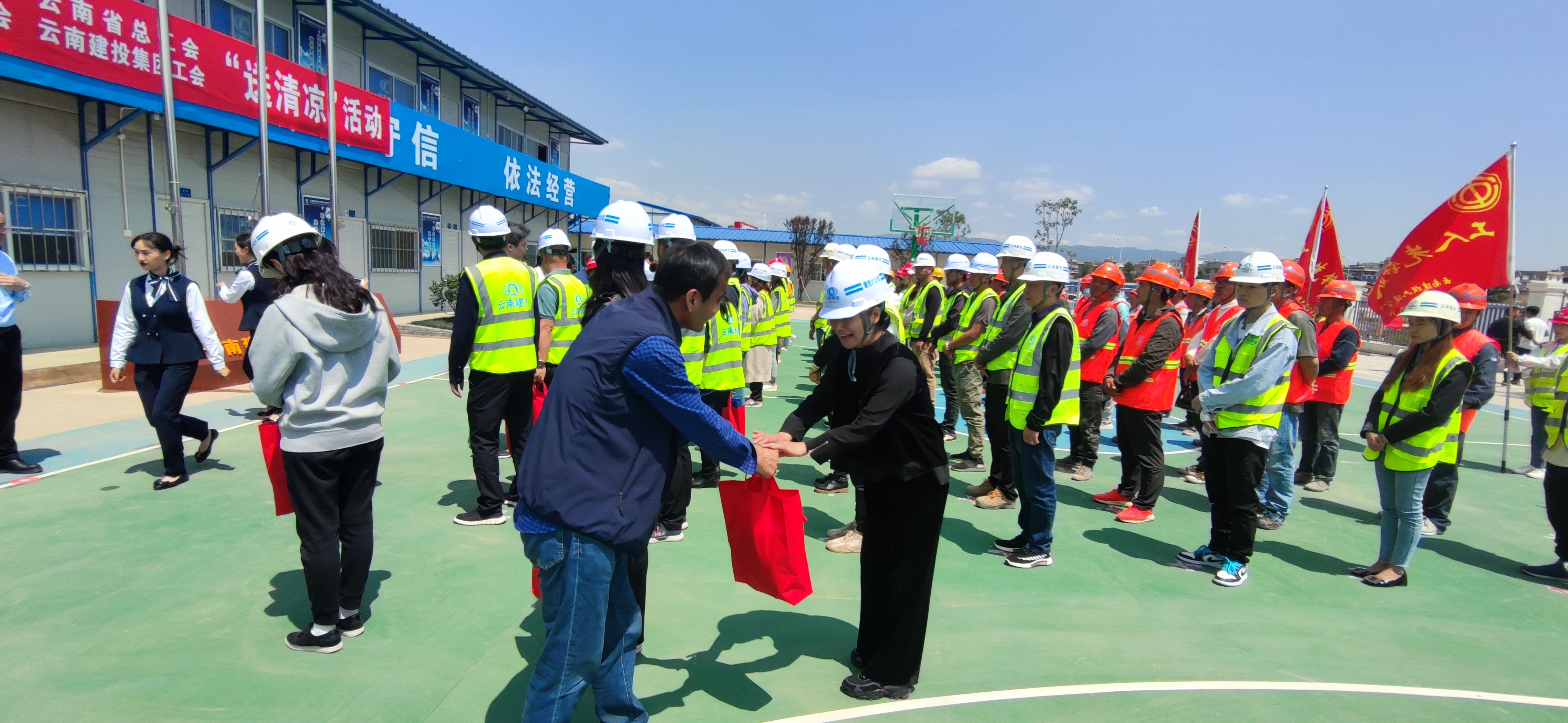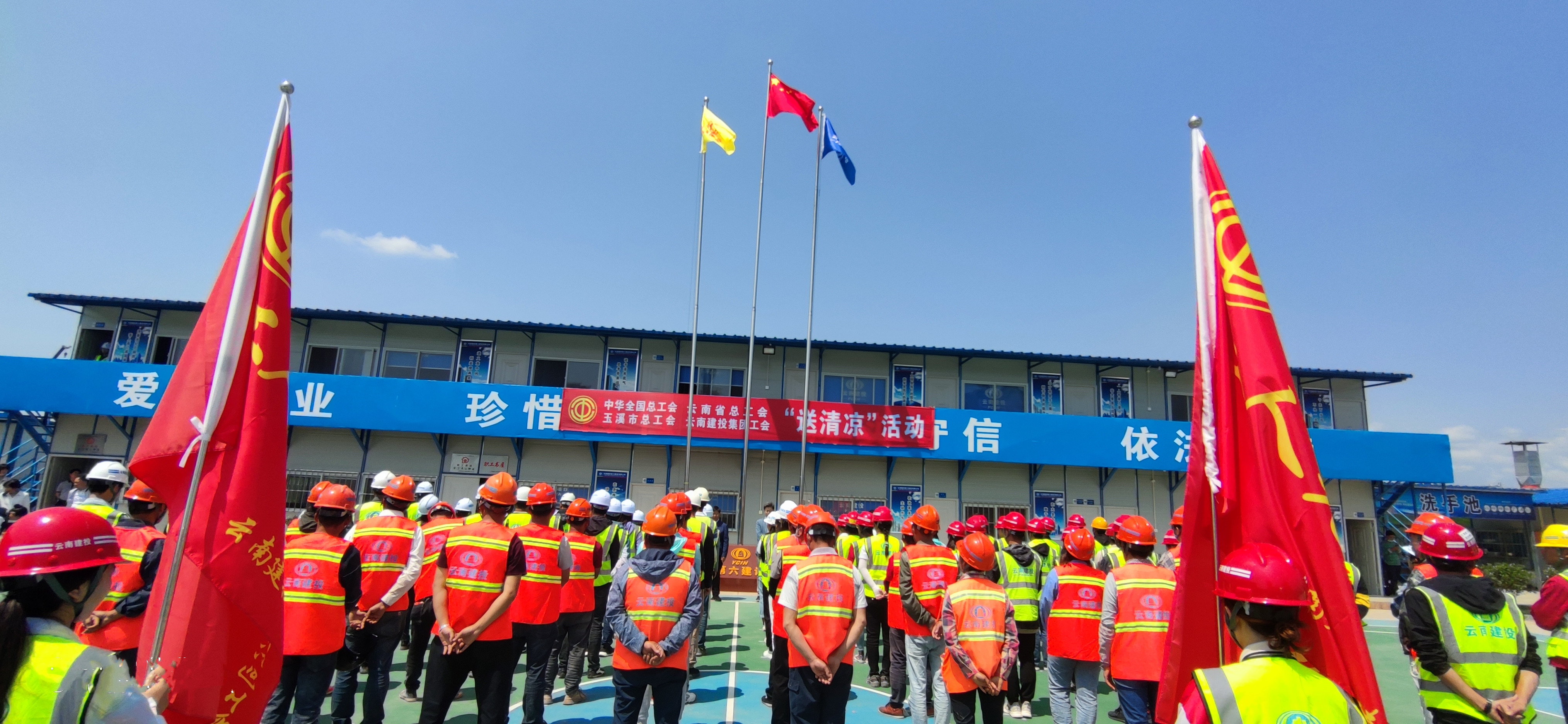 4月29日上午11點,中華全國總工會、云南省總工會、玉溪市總工會、集團總工會到玉溪高鐵新城項目開展“夏送清涼”慰問活動,集團工會副主席趙艷波、公司工會副主席李錦英參加活動。