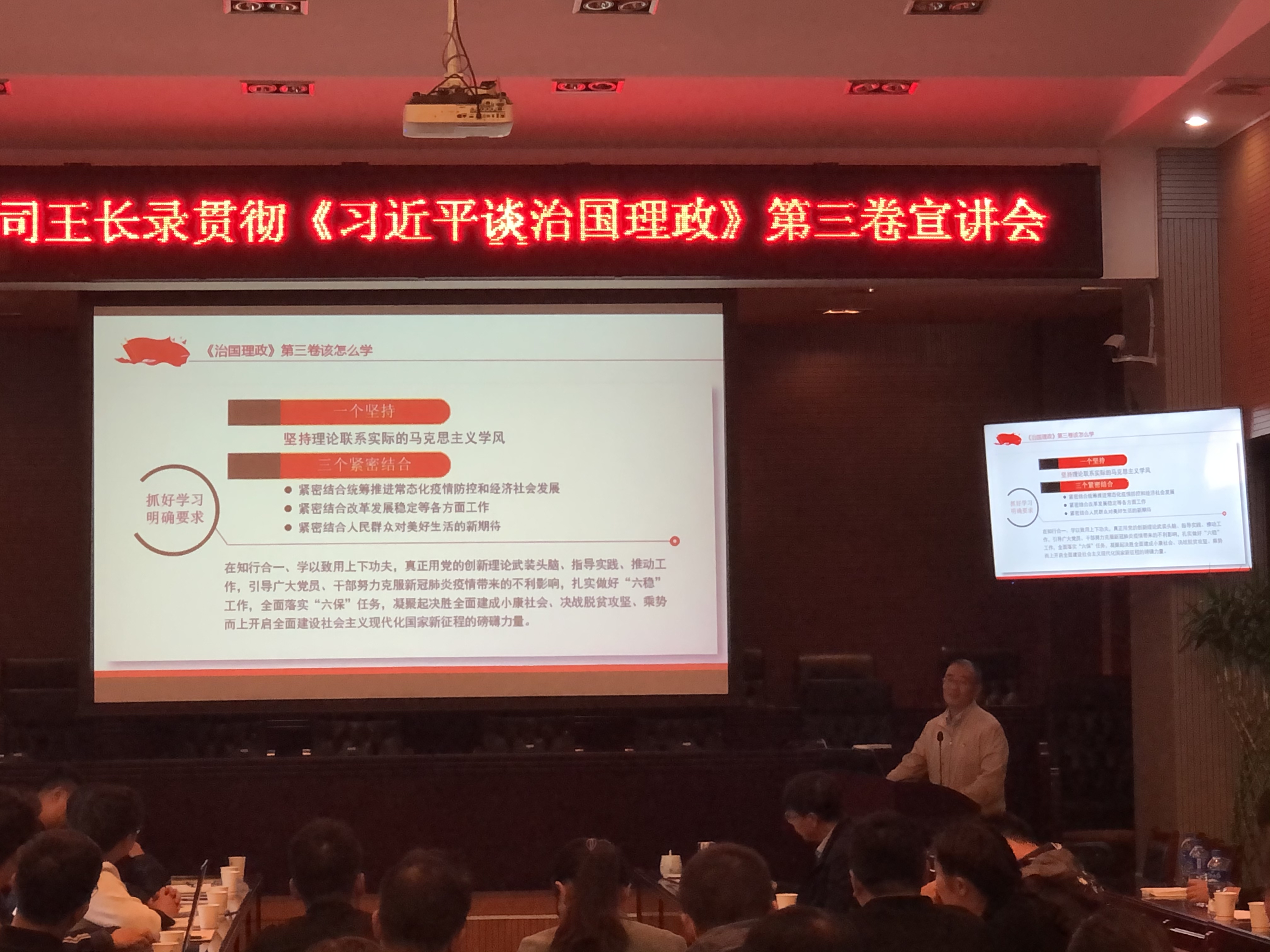 在題為“《習近平談治國理政》第三卷之推動經濟高質量發展”宣講會上,王長錄圍繞“意義”、“內容”、“怎樣學習”、“推動經濟高質量發展學習體會”等四個方面進行詳細講解。他強調,技術系統人員和黨員干部要以此次宣講為契機,通過學習,深刻把握其核心要義、精神實質、實踐要求和蘊含其中的馬克思主義立場觀點方法,做到學思用貫通、知信行統一,切實把學習成效轉化為推動公司高質量發展的持續動力。
