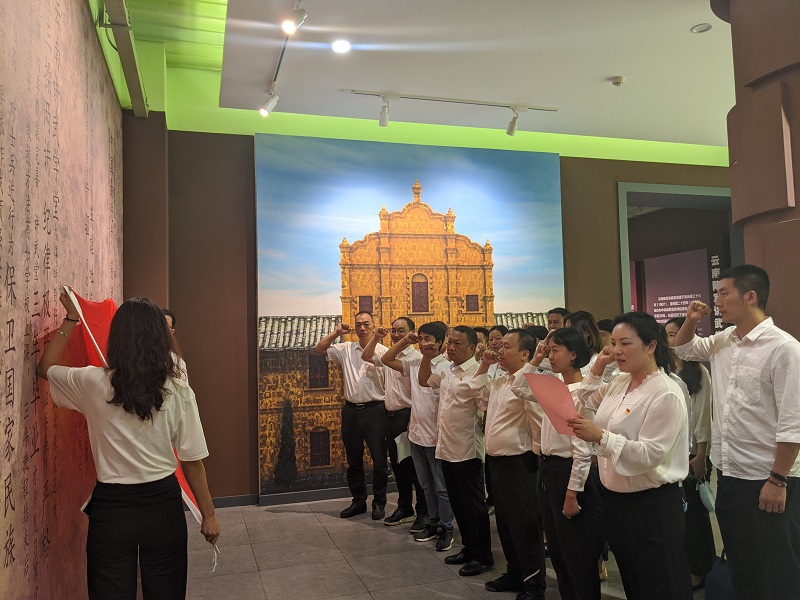 三個黨支部組織參觀了云南陸軍講武堂歷史博物館,回顧云南陸軍講武堂對中國近代史產生的重要意義。緬懷從講武堂走出的滇軍抗戰中堅力量,開國元勛朱德、葉劍英,“護國三杰”蔡鍔、唐繼堯、李烈鈞將軍,抗日名將周保中將軍,還有數以千計馬革裹尸、獻身報國的講武堂畢業生。活動結束時全體人員面對黨旗,重溫入黨誓詞。