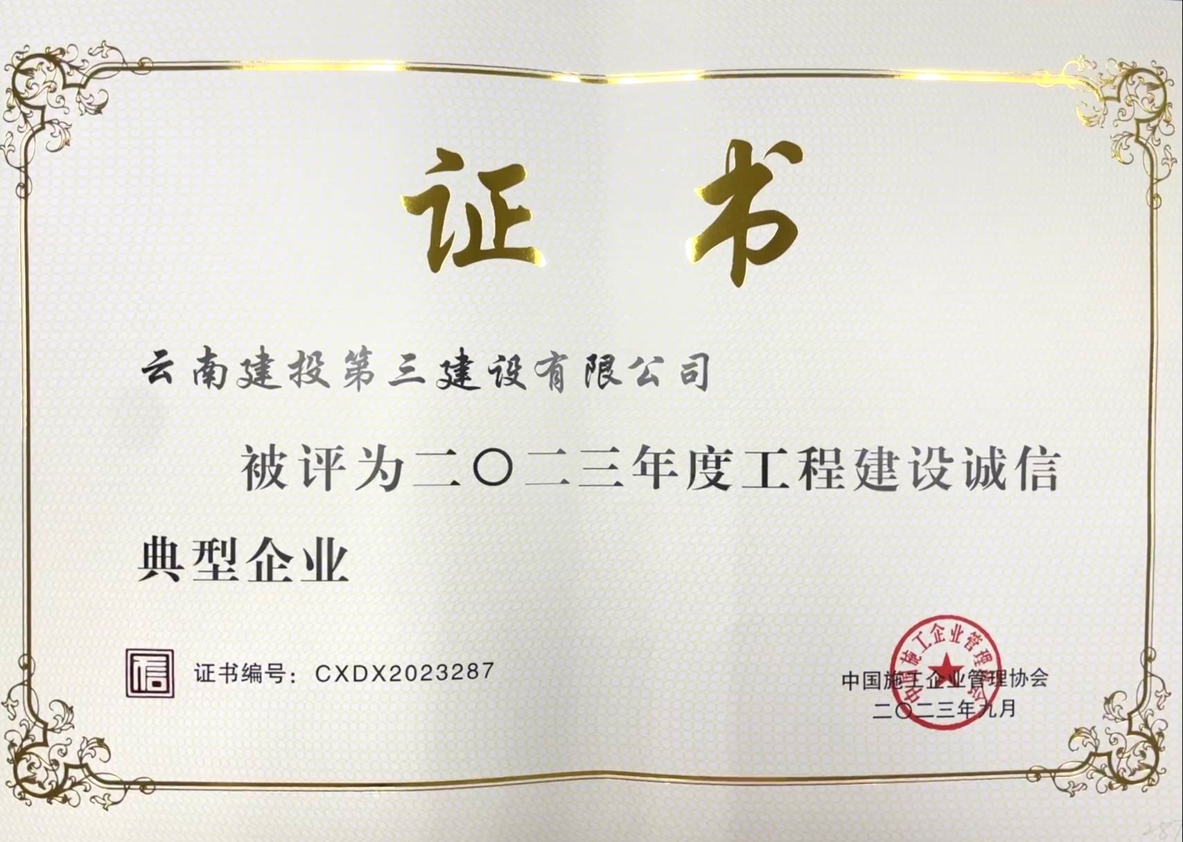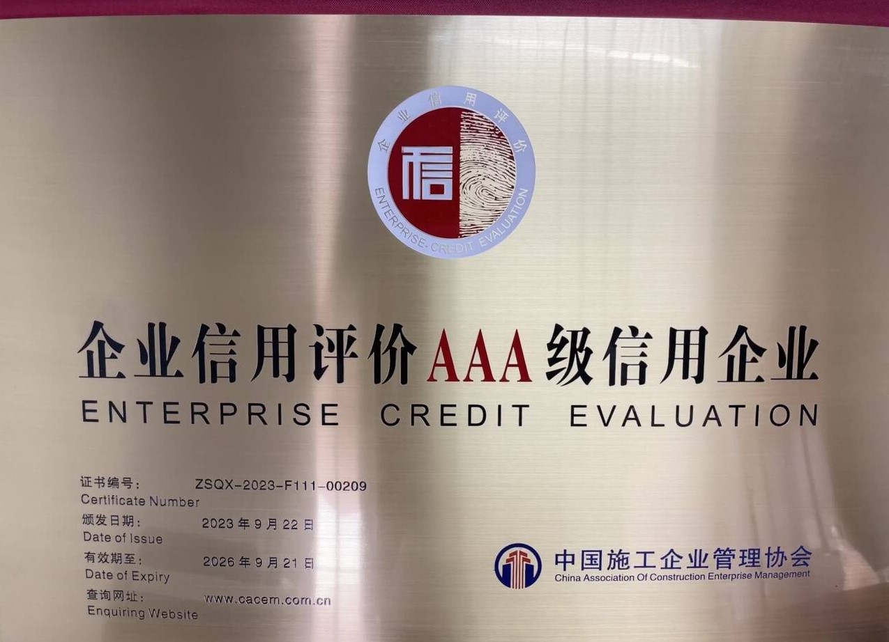 近日,公司順利通過中國施工企業管理協會組織的2023年度誠信典型企業申報評選以及信用評價復評工作,獲評“2023年度工程建設誠信典型企業”“2023-2026年工程建設AAA信用等級企業”“2023年度工程建設信用星級企業”,獲得工程建設企業信用星級15星。