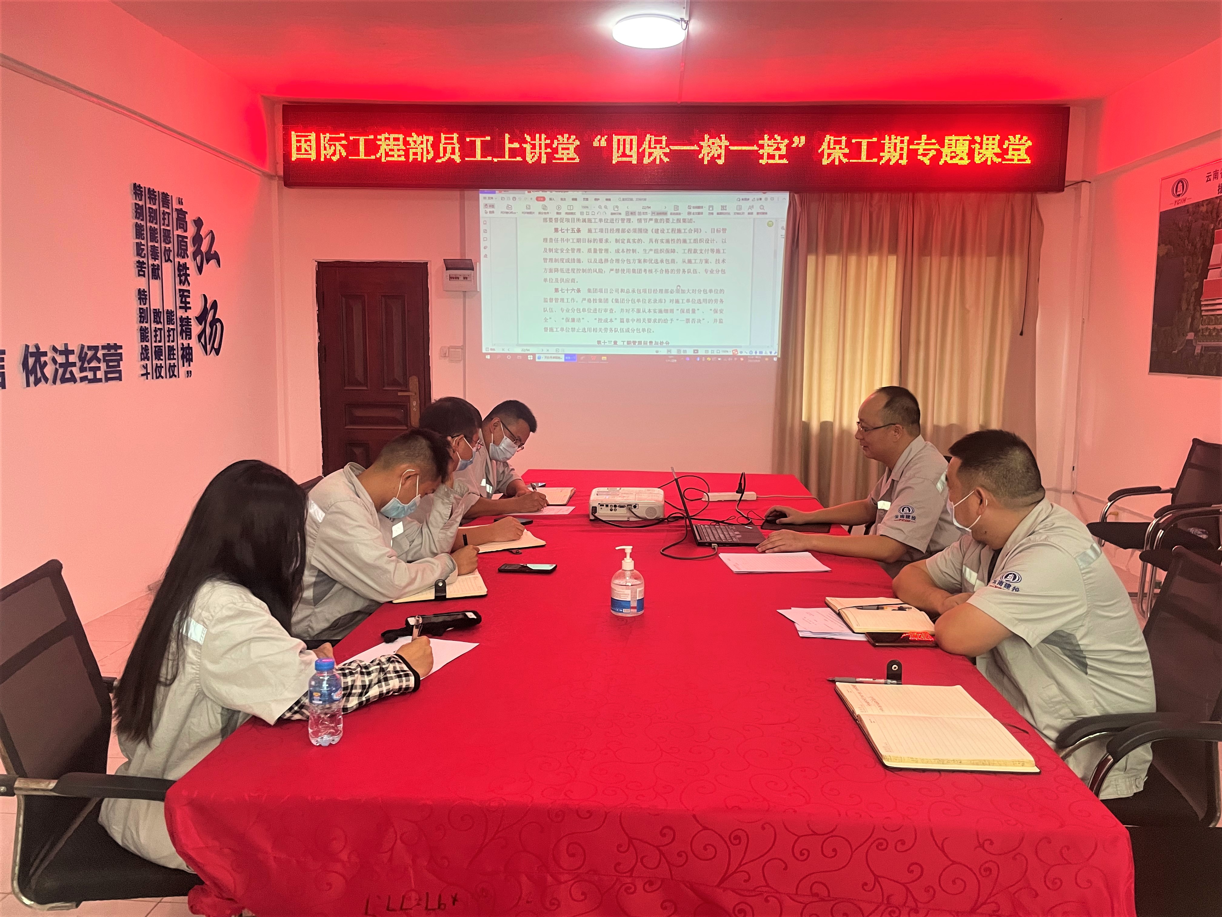 國(guó)際工程部克服地域困難,將員工講堂搬到線上;克服境外工期緊、任務(wù)重、時(shí)間少,將員工講堂開(kāi)在晚上;克服職工項(xiàng)目生活枯燥、單一,將集體讀書(shū)學(xué)習(xí)提升的任務(wù)放在心上。項(xiàng)目副經(jīng)理講授的《境外項(xiàng)目實(shí)施注意事項(xiàng)》,從境外項(xiàng)目的分類(lèi)、項(xiàng)目組織模式、人材機(jī)資金技術(shù)等給大家上了一堂獲益匪淺的課,豐富了大家對(duì)援外項(xiàng)目施工管理的認(rèn)識(shí)。雖然直管部干部職工分散各地,但一起學(xué)習(xí)提升的課堂每周不見(jiàn)不散。