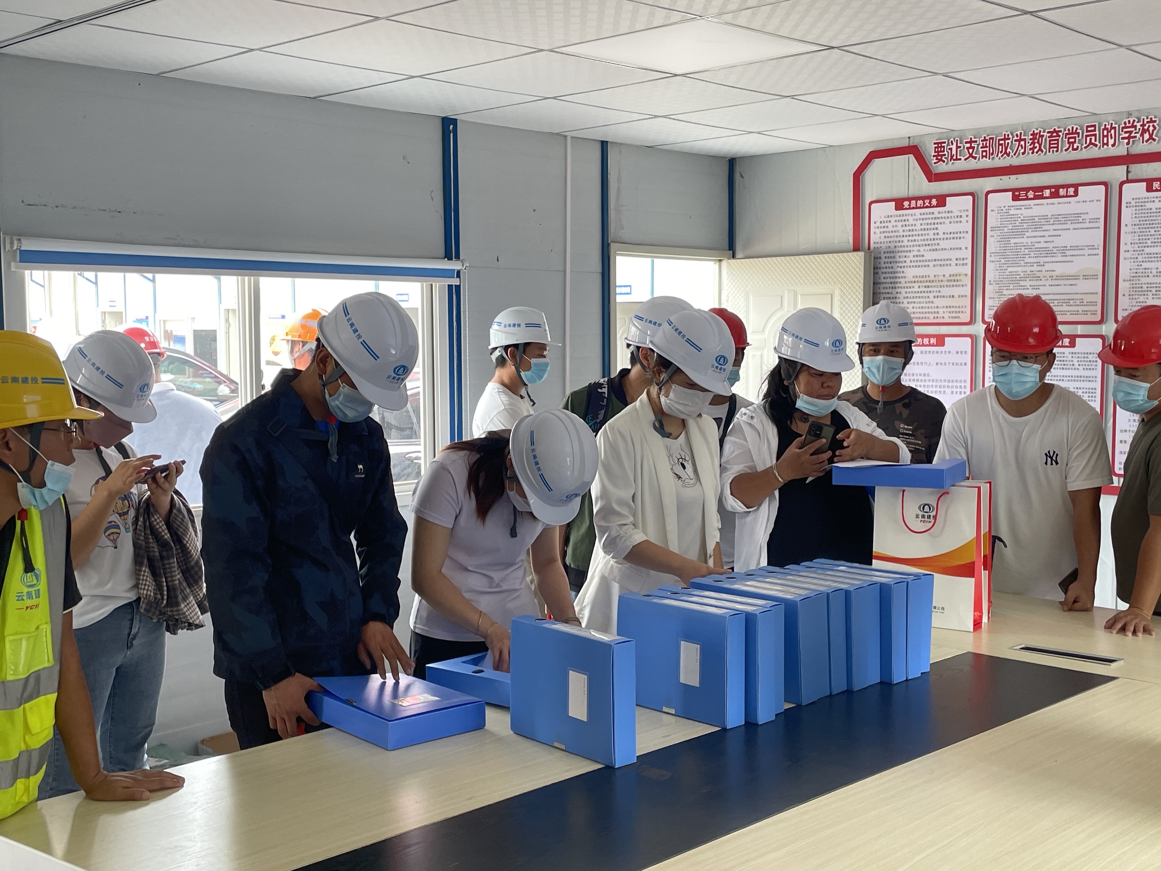 活動中,大家有序簽到,領取項目宣傳冊,進行了安全交底后進入現場參觀,項目負責人認真講解,帶領大家參觀了樣板區及項目現場,最后到項目部會議室對安全、質量、技術的內業資料進行交流學習。參加人員在實地感受項目的標準化建設后表示,要向該項目施工組織、安全質量的管理靠齊,學習項目人員嚴謹的工作作風及管理水平。