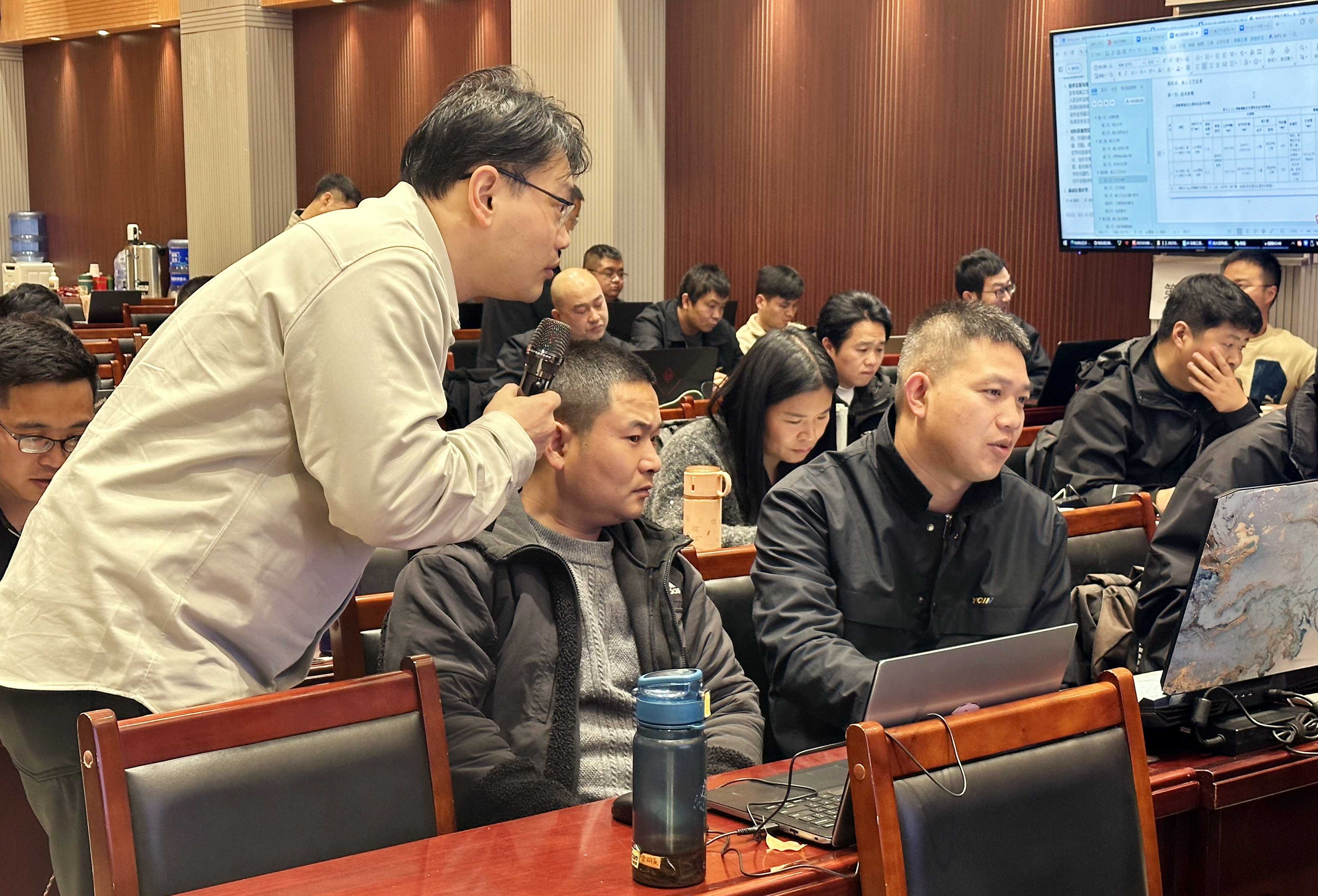 本次培訓采用“集中學習+線上直播”方式進行,在公司一號會議室設置主會場,在公司二號會議室、篆新公司會議室和28個項目部會議室設置分會場,最大程度擴大學習覆蓋面。