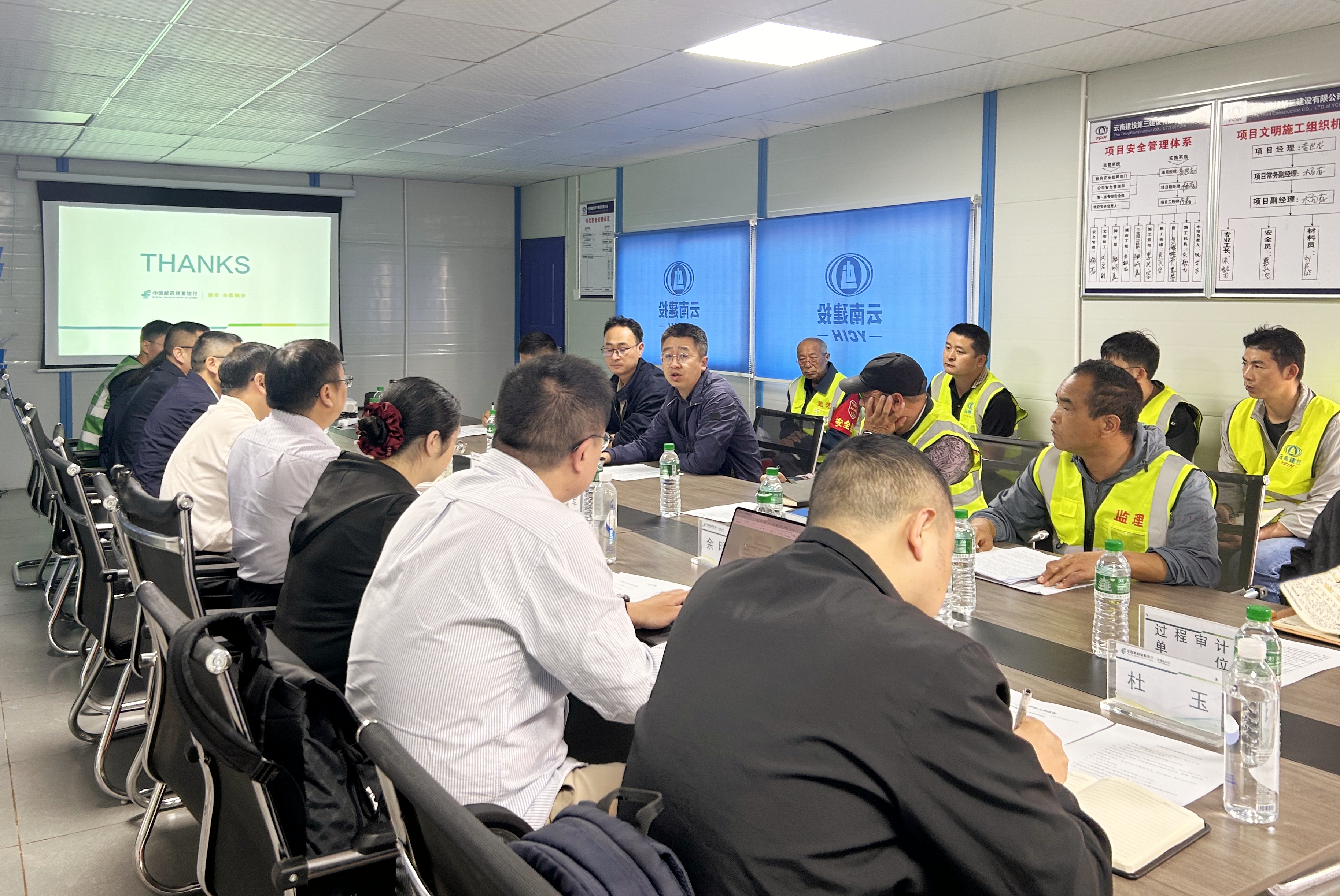 5月11日,中國郵政儲蓄銀行云南省分行副行長白慶元一行到公司承建的大理郵儲銀行項目調研指導,公司副總經理楊成、第一直管項目部負責人陪同。