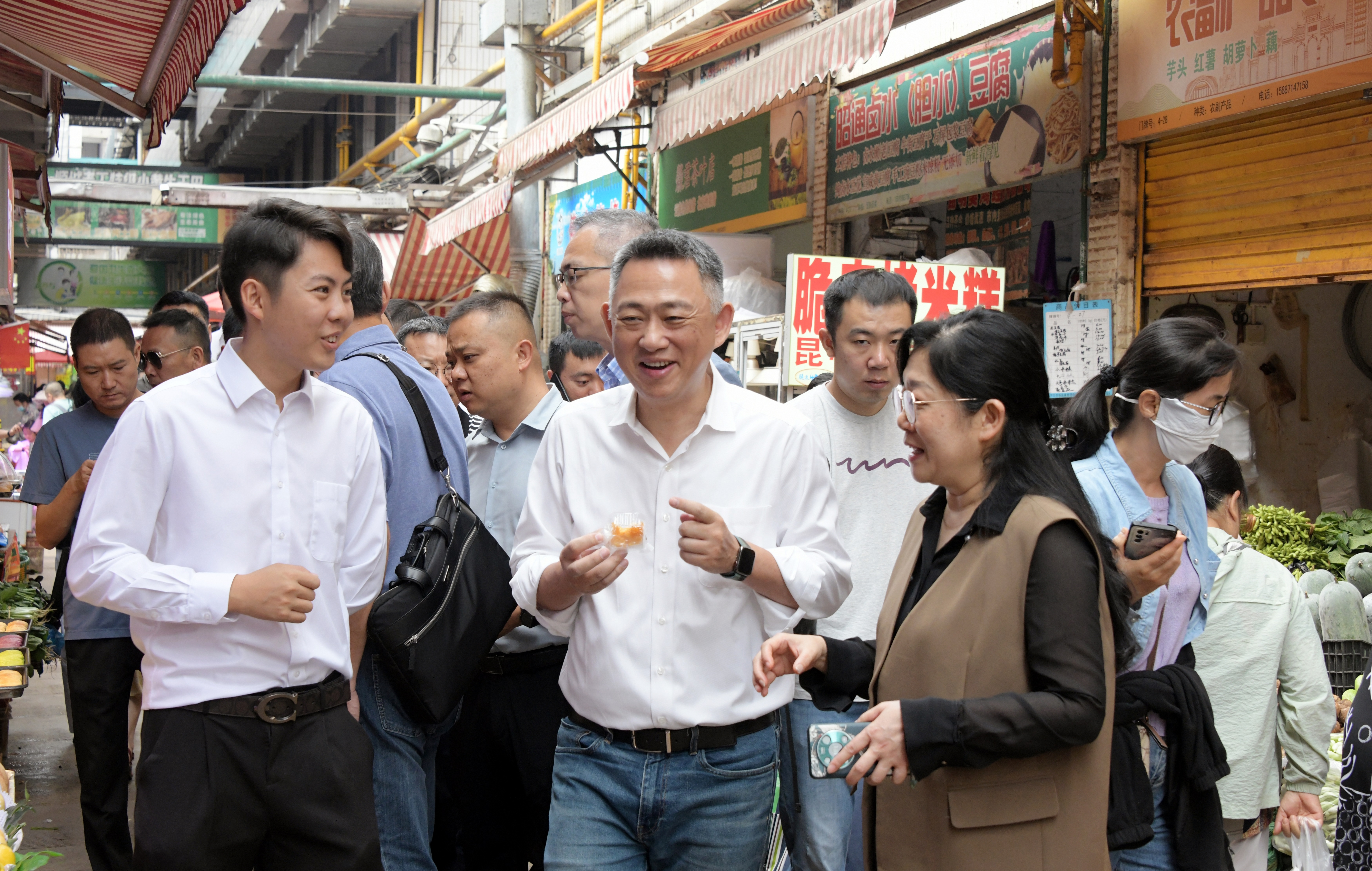8月2日上午,臺北農產運銷股份有限公司董事長楊鎮浯率考察團到集團大觀篆新農貿市場實地考察。昆明市委統戰部副部長、市臺辦主任王蓉陪同??疾靾F一行深入篆新農貿市場,參觀了野生菌交易區、熟食區、肉類區、蔬菜區、水產區等特色產品區域,詳細了解市場秩序、環境衛生、布局設施、日常管理等情況,就市場規劃設計、管理模式、經營狀況、發展...
