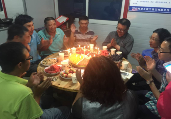 5月7日,第五直管部領導班子在蒙自項目為生日在5月初的五位同事舉辦了集體生日聚會。一個水果蛋糕,一首生日歌,伴隨著生日蠟燭的吹滅,大家有說有笑,聊著青春,嘮著家常,吃著蛋糕,就像一家人一樣,無比的親近。蒙自項目因工期緊張,有一部分同事連過年都沒有來得及回家,直管部以生日聚會的方式讓職工感受到了大家庭的溫馨。??????...