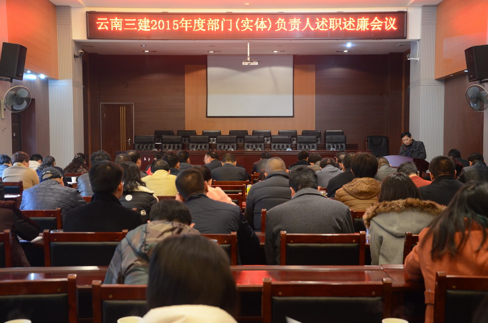 1月8日,公司召開了2015年度部門(經濟實體)負責人述職述廉會議。公司在昆班子成員,各部門(經濟實體)經理,各基層直管部、項目部經理、書記共80人參加會議,會議由公司總經理助理沈波主持。會上,26名部門(經濟實體)負責人分別就履職情況、目標完成情況、廉潔自律情況、存在問題分析及改進、部門建設情況等方面進行述職述廉。各...