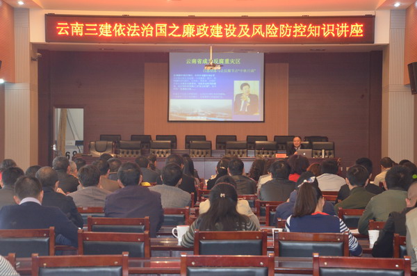 ??為深入貫徹十八屆四中全會(huì)精神,順應(yīng)當(dāng)前企業(yè)發(fā)展形勢(shì)。按照公司黨委2015年工作安排,4月11日,公司法律事務(wù)部特邀凌云律師事務(wù)所耿國(guó)平律師給全司副科級(jí)以上干部職工做了題為《企業(yè)高管的廉政法律風(fēng)險(xiǎn)認(rèn)知與防范》的專題講座,通過(guò)精神宣貫、引經(jīng)據(jù)典,把“依法治國(guó)”、“依法治企”理念,深植于公司每個(gè)干部職工心中。公司在昆領(lǐng)導(dǎo)...